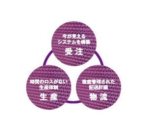 お客様からの注文内容をデータ化し基本情報として、生産・物流の体制を独自のシステムですばやく整えます。基本データは工場へ自動的に送られ、製造から完成までのスケジュールを詳細に管理することが可能。また同時に配送計画を行い出荷のタイミングまで把握し、お客様のご要望に確実にお応えしています。迅速・正確・高品質であることを第一に考え、徹底的にデータ管理を行い、品質に妥協しないサービス体制を構築しています。